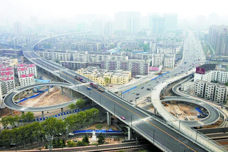 昨天上午,京沙快速通道工程工程監(jiān)理王柳洋,帶記者體驗了該路高架橋路段。由京沙快速通道與中原路交叉口北上,路中央已畫有兩條黃線。行至解放路高架橋頂端,可見從該路分出的匝道,形成兩條線路一南一北并入京沙快速通道。向北駛入金水路、北三環(huán),向南駛入中原路、南三環(huán),“兩條高架橋的連接,能最大限度地緩解二七廣場區(qū)域及未來火車站西出站口的交通壓力。”王柳洋稱,在京沙快速通道一期工程中,跨解放路高架橋、隴海鐵路、金水路系最為復雜的工程。