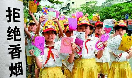 5月30日,許昌市古槐街小學的禁煙小宣傳員們,帶著親手制作的無煙日手抄報、禁煙勸導卡,來到廣場、公園、商場等公共場所,勸導市民拒絕煙草。