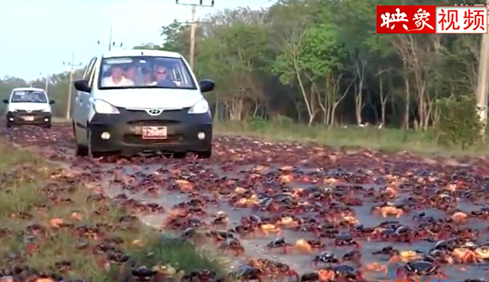 • 實拍百萬螃蟹大遷徙 汽車軋上咔咔響
