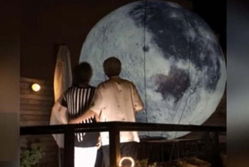 爺爺自帶“月亮”陪老伴過中秋