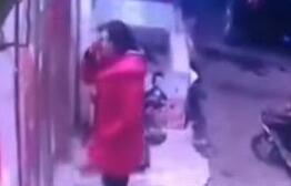 遮擋號(hào)牌出奇招 女子擋著貨車跑