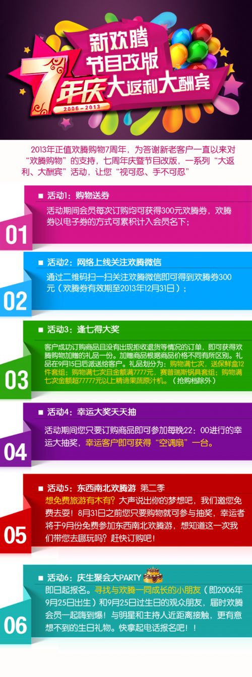 歡騰購物7周年慶 優惠活動樂翻天