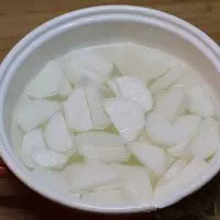 3. 把蘿卜片放入鍋中,倒入足量的水。