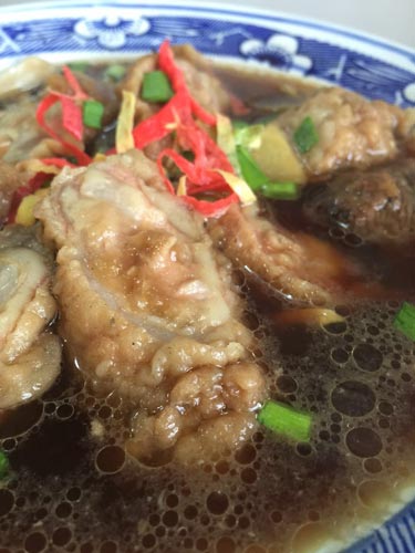 2、之后爆香蔥姜,下蠔油、海鮮醬、白糖,鹽調成湯汁;
