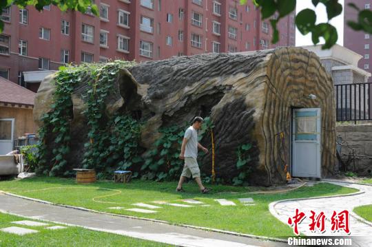 吉林省長春市近來出現一所外形酷似樹墩的公共廁所,引來很多市民的關注。這座公廁乍一看去像是一尊巨大的樹干,長約十米左右,直徑約四米。張瑤 攝